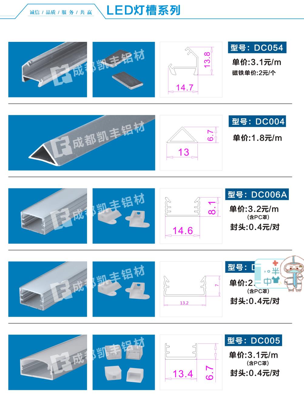 本公司坚持以客户为焦点,坚持持续质量改进,不断满足客户的需求和期望。目前已开发生产各种工业铝材、广告铝材、装饰铝材、各种型号角铝、矩管及各种工业异形铝材,广泛用于工业模块化组装系统,工业自动化设备系统、机械防护系统、医疗系统、教育系统、办公楼字、商业区域、汽车4S店、机场、地铁、火车站等各类公共区域。每款系列都涵盖了环保、节能、人性化理念。其独特的设计,充分体现人与自然的和谐。